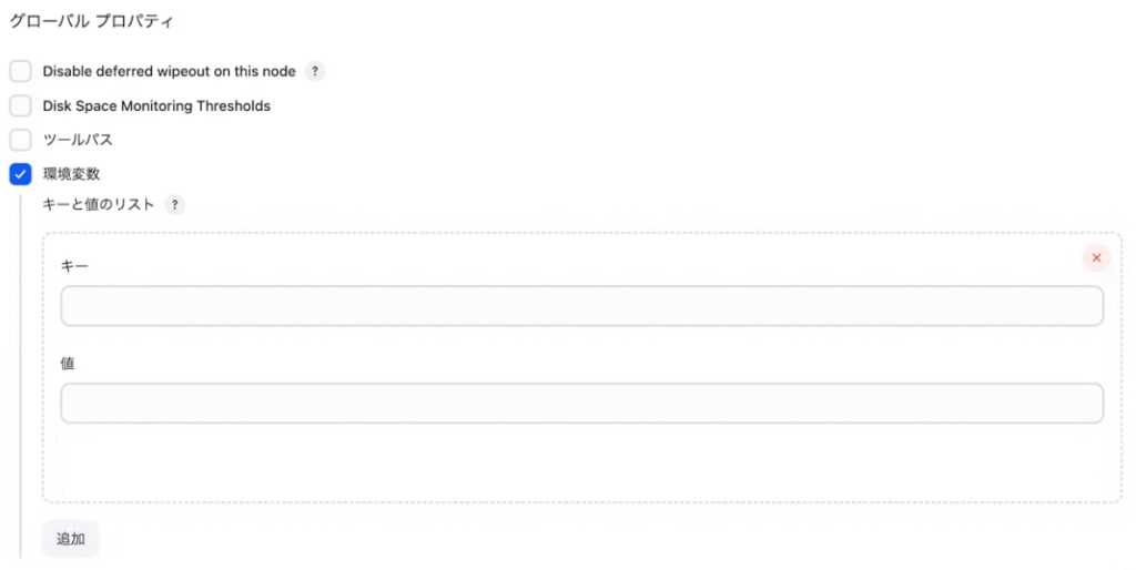 Jenkinsの右上の歯車からシステムを選択し環境変数に以下を追加